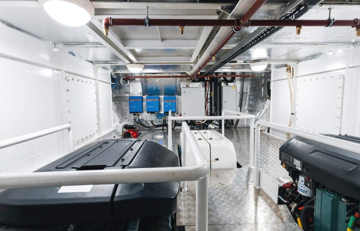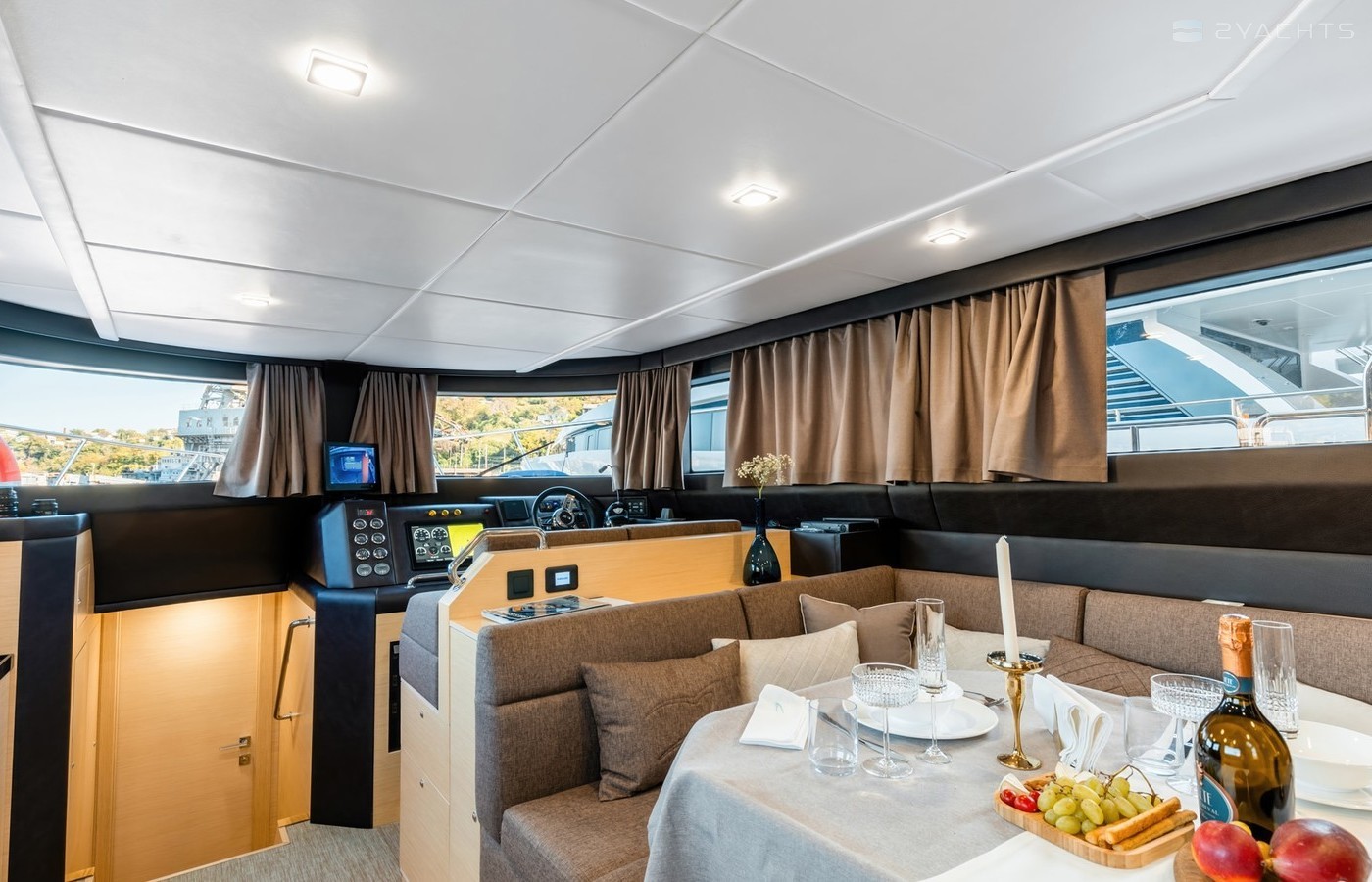 - нижняя палуба: мастер-каюта с собственным санузлом и гардеробной, две гостевые каюты, санузел, техническое помещение; - салон: основной пост управления, зона отдыха, камбуз.