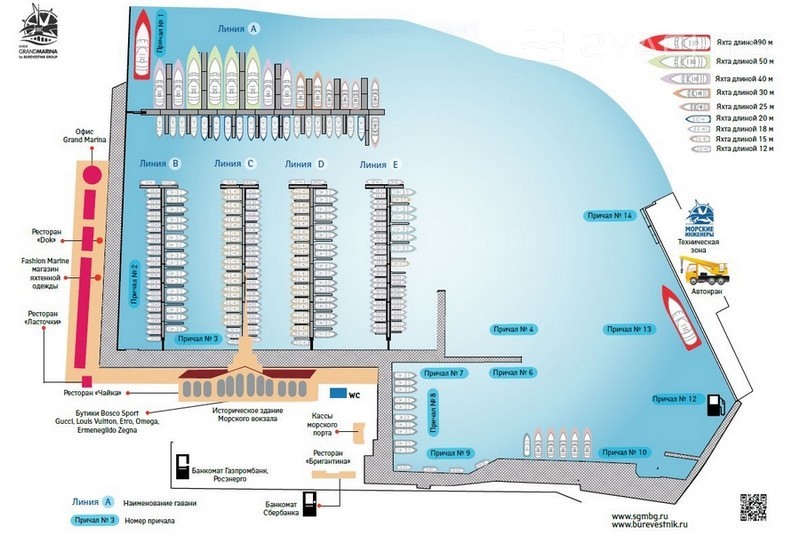 Sochi Grand Marina – яхтенный порт с самой современной инфраструктурой на территории СНГ, предлагающий своим клиентам наиболее широкий спектр услуг: 24-часовой консьерж-сервис, сервисное обслуживание яхт, включая подъем в технической зоне и стоянку на берегу Индивидуальный подход и гибкость в предоставлении дополнительных сервисов, а также развитая инфраструктура порта и центра города делает пребывание в Sochi Grand Marina максимально комфортным. В настоящий момент яхтенная гавань может принимать до 300 яхт, в том числе – до 10 яхт максимального размера 140 метров. Burevestnik Group - крупнейший в России яхтенный холдинг, который в 2014г подписал соглашение с российской судоходной компанией ОАО «Совкомфлот» об управлении уникальным проектом Sochi Grand Marina. Современная яхтенная гавань была построена в рамках программы по развитию береговой зоны морского порта Сочи.