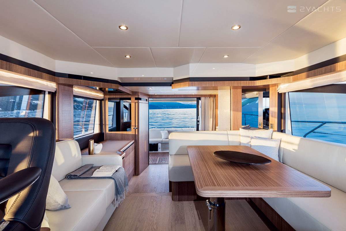 На кокпите судна есть вместительный диван, удобный лежак для загара, а по краям рейлинг из нержавеющей стали. Дверь, ведущая в кокпит, выполнена из органического стекла и нержавеющей стали, а противоскользящее покрытие гарантирует безопасность пассажиров. В процессе производства мебели на главной палубе используется орех Каналетто с матовой отделкой, U-образный диван обшит кожей, а в салон ведет трехстворчатая дверь с тонированным стеклом.