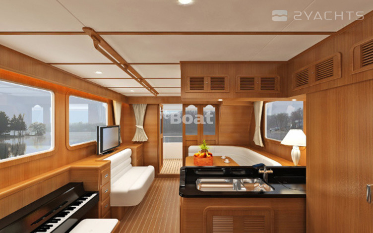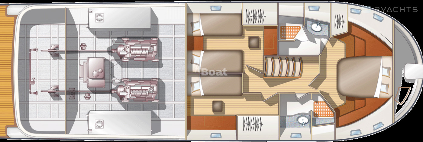 Первая модель французской верфи Adagio, имеющая неограниченный регион плавания (класс «А» по сертицикации СЕ). При необходимости Europa 55 способна разгоняться до 17 узлов и берет на борт 4 тонны топлива, что на экономичной крейсерской скорости 8–10 узлов в водоизмещающем режиме выражается высокой автономностью. Исключительно светлый салон и кокпит здесь расположены на одном уровне, а ходовая рубка традиционно приподнята над палубой и оснащена по последнему слову техники. В двухкаютной версии на нижней палубе Europa 55, помимо многочисленных шкафов, оборудован вместительный гардероб, а при выборе планировки с тремя каютами на борту получается пять полноценных комфортных спальных мест.