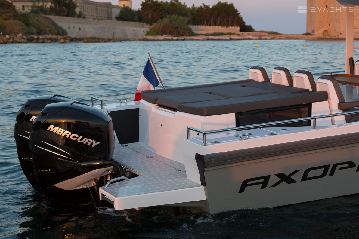 Axopar 37 Sun-Top – прогулочный боурайдер, который выпускается с 2017 года. Он оборудован десятью посадочными и двумя спальными местами для пассажиров. Корпус изготовлен из стеклопластика, его длина составляет 11.2 метра, ширина – 3.3 метра, а осадка – 0.85 метра. Катер имеет международную сертификацию CE (B), что позволяет осуществлять выходы в море, на расстояние до двухсот морских миль от берега.