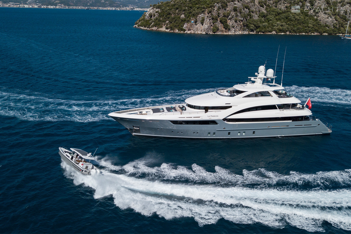 Через проходы, расположенные по бортам и огороженные металлическими перилами, можно зайти на открытую носовую площадку, оборудованную просторным лежаком для двух человек и компактным креслом с вмонтированным рундуком. На корме расположен еще один двухместный лежак и установлены две платформы с лестницей для доступа к воде, аэратор, металлические поручни и крепление для буксировки.
