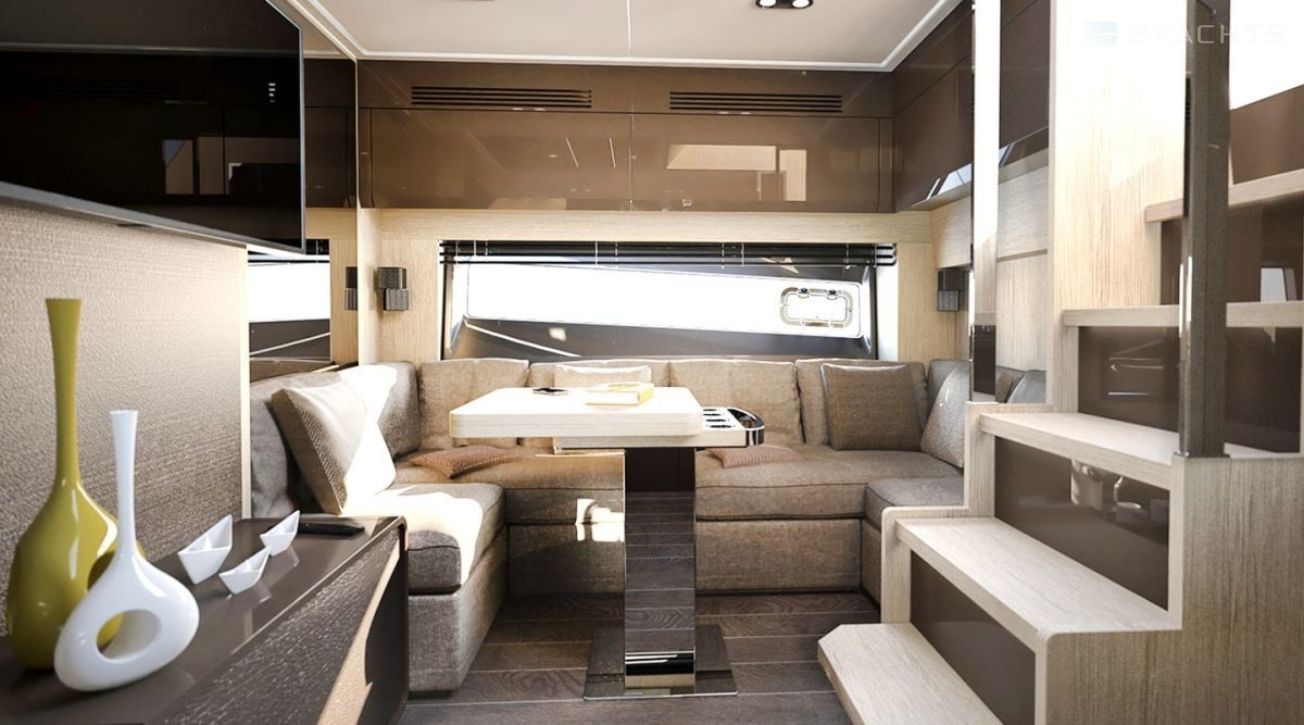 Для отдыха с компанией предусмотрена затененная терраса и лежаки в носовой части яхты. Прямо с террасы можно пройти на гидравлический транец, открывающий безопасный доступ к воде. На главной палубе Azimut Atlantis 51 находится просторная зона отдыха и пост управления. На нижней палубе расположены 3 гостевые каюты, обеденная зона и кухня с плитой, холодильником, духовкой и местом для хранения запасов продуктов. Каюта владельца получила отдельный санузел с душем, гардероб и иллюминаторы на обеих сторонах корпуса. Заказчику также доступна конфигурация с тендерным гаражом, который позволяет вместить 3,5 метровый тендер или другой водный транспорт.