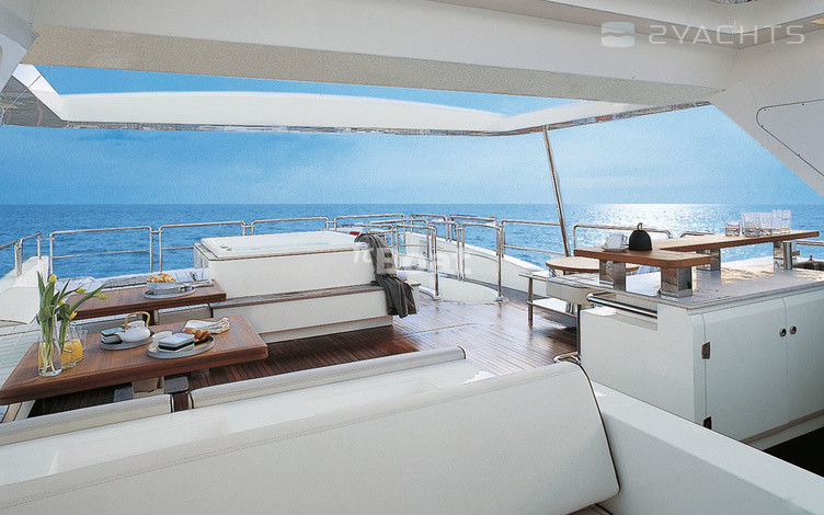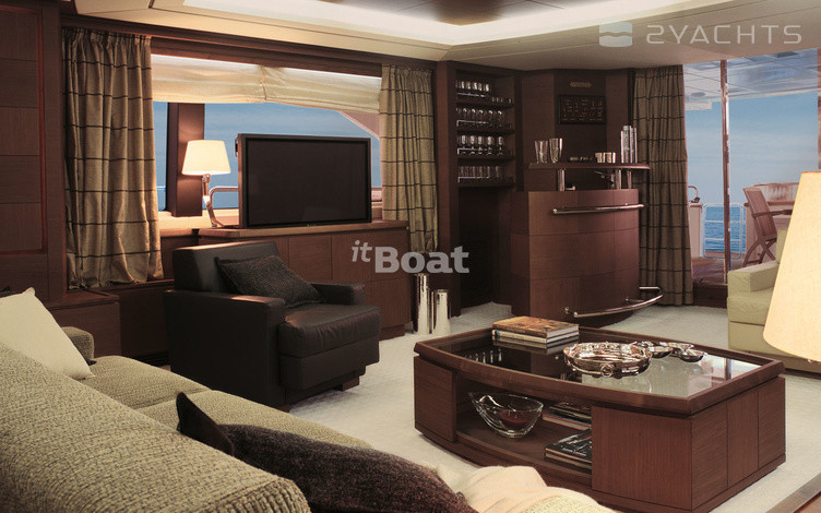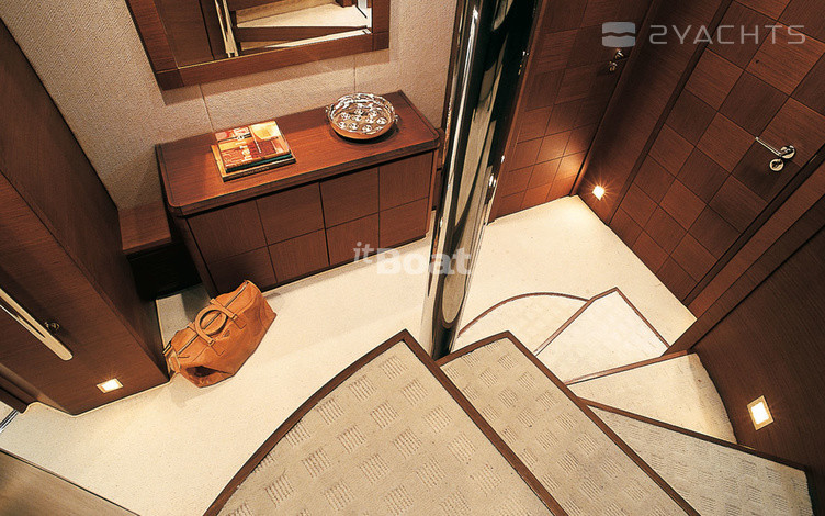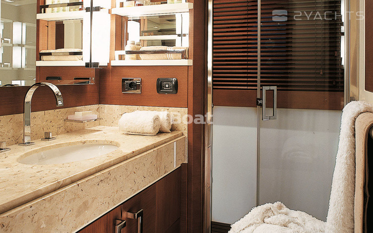 Итальянские стиль и чувственность — главные особенности дизайна яхт Azimut Yachts и ее модельного ряда Grande в особенности. Вместе с тем, сказанное выше вовсе не противоречит практичности, с которой спроектирована флайбриджная Azimut Grande 105. На яхте с комфортом разместится 8–10 гостей. Мастер-каюта может быть расположена в носовой части главной палубы — в этом случае остальные четыре двухместные каюты находятся на нижнем уровне, там же, ближе к носу, оборудована и зона для команды. Хозяйские апартаменты могут быть перенесены вниз в «общую» жилую зону, в этом случае на главной палубе высвободится дополнительное пространство для каких-либо других целей — это может быть кинотеатр, второй салон, и ли все, что пожелает будущий владелец. Из-за своих размеров Azimut Grande 105, естественно, сможет останавливаться на стоянки далеко не во всех маринах. Однако осадка яхты (при длине более 30 метров) составляет всего 1,63 м, а значит, лодка сможет заходить в мелководные бухты. Такие возможности оценят любители тихих якорных стоянок вдали от цивилизации. Огромный транцевый гараж вмещает не только тендер, но и jet-ski или другое оборудование для отдыха на воде. Флайбридж Azimut Grande 105 выполняет роль столовой, солярия, спа-салона и кают-компании на свежем воздухе одновременно.