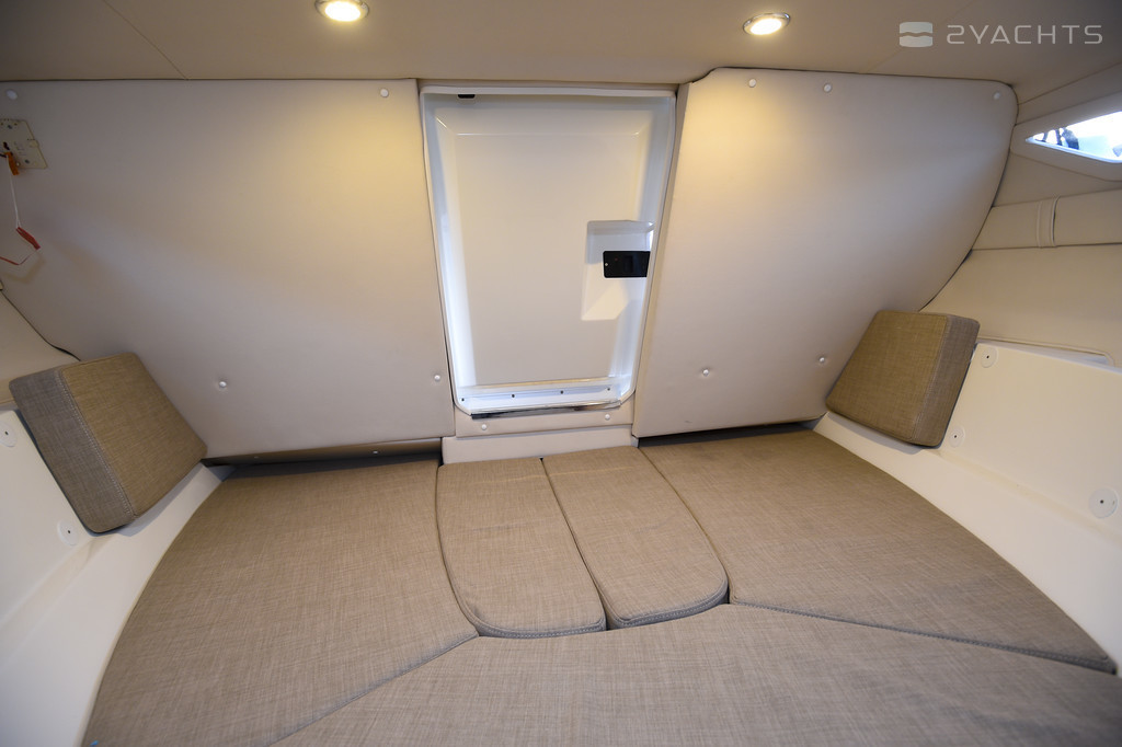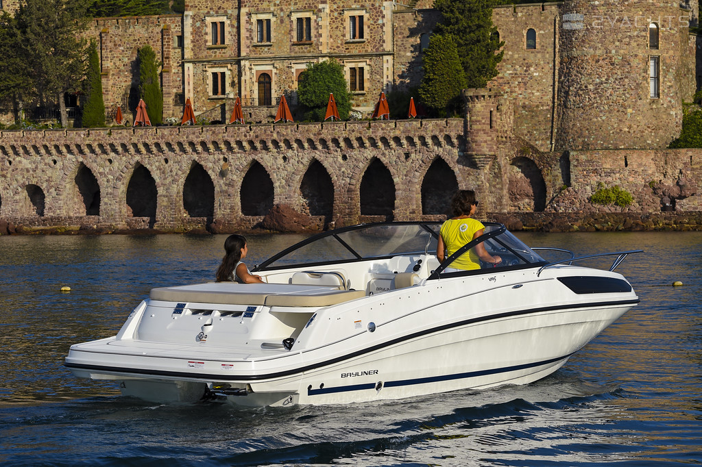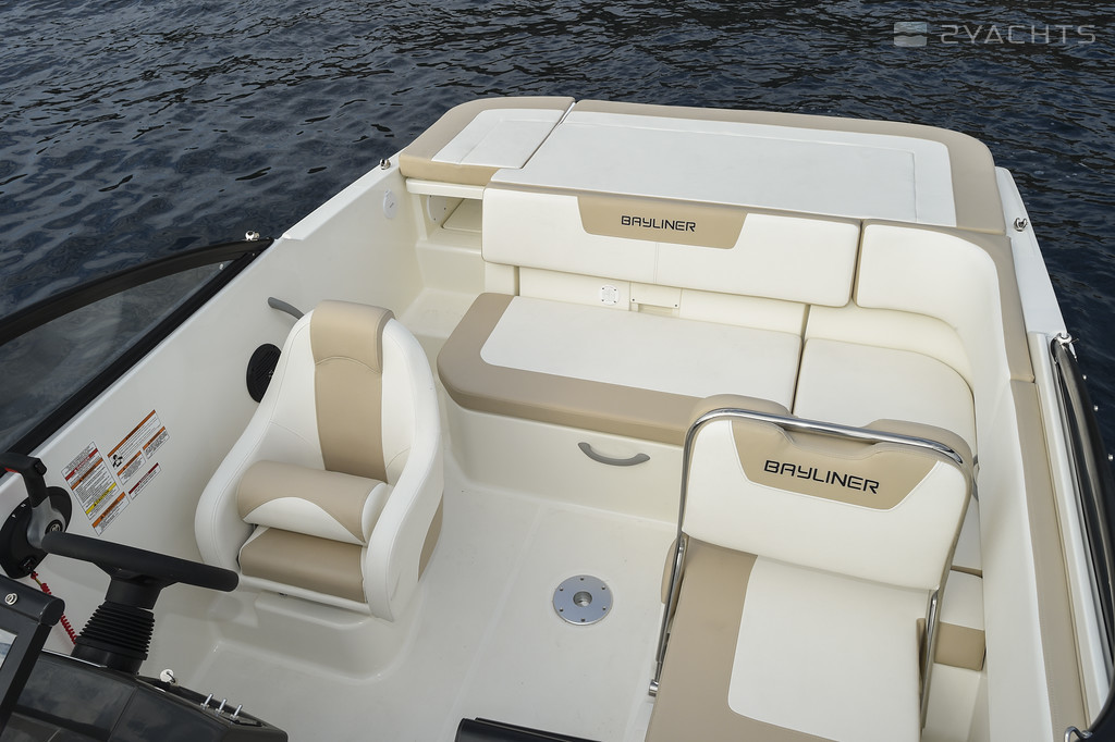 Bayliner VR5 Cuddy имеет зону отдыха с угловым диваном и столом, присутствует место для установки двух лежаков. Корма оборудована платформой для доступа к воде, а в носовой части судна находится компактная каюта для двух человек.