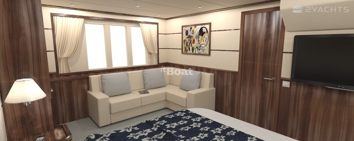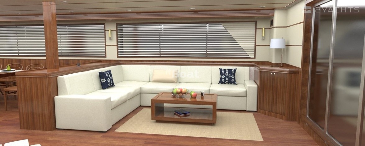 Стремительная и современная, эта яхта, без сомнений, будет привлекать взляды в маринах. Спроектированная в лучших мировых тенденциях опытными морскими инженерами, очень технологична, она удивляет своей грациозностью и плавностью линий.