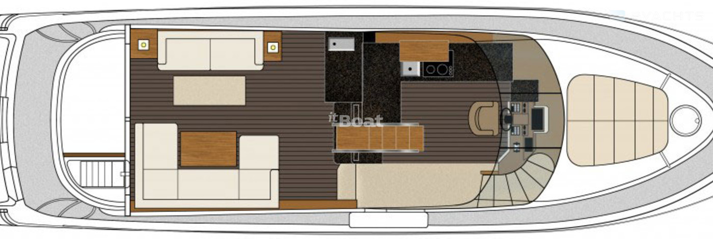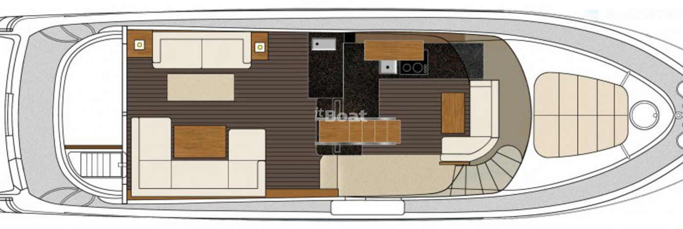 На нижней палубе Carver 54 Voyager размещены три каюты и два санузла. Верхняя палуба может похвастаться кают-компанией с 32-дюймовым телевизором с CD/DVD-чейнджером на 5 дисков, аудиосистемой со спутниковым радио и док-станцией для Apple iPod. Там же опционально может быть размещено место рулевого. В этом случае рулевая рубка делит пространство с Г-образным камбузом. Если владелец решил не размещать рулевую рубку на верхней палубе, то ее место займет гостиная с обеденным столом. Штурвал в таком случае будет находиться только на флайбридже.