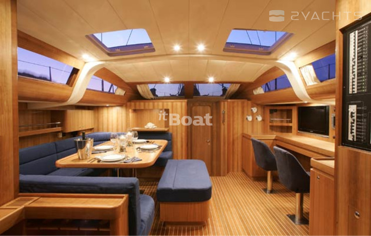 Comet 62RS продолжила линейку яхт с поднятым салоном в модельном ряду фирмы. Идеология 62-й модели была выбрана ровно такой же, как у ее предшественницы Comet 52RS — это быстроходный корпус с мощным парусным вооружением, одновременно с этим имеющий комфорт на борту, достаточный для продолжительного крейсерского плавания с максимальным удобством. Внутренняя планировка яхты крайне необычна — камбуз вынесен за пределы салона и размещен ближе к носу у мачты напротив гальюна хозяйской каюты. При этом камбуз полностью изолирован от салона, кроме того, находится в том месте, где качка ощущается наименее всего. На длинных переходах это облегчает коку приготовление пищи. Необычна и планировка салона — вместо выделенного одиночного штурманского места здесь вдоль по правому борту размещен большой стол с двумя креслами. Одно из них предназначено для штурмана, второе место может использоваться для офисной работы в ходе длительного плавания.