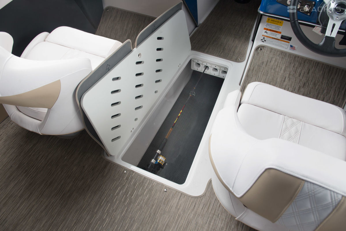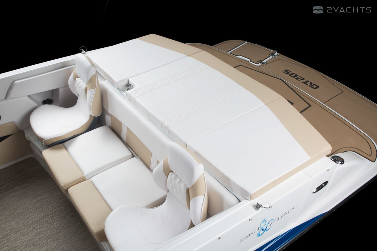Буквы «SF» в названии 6,25-метрового боурайдера Glastron расшифровываются как «Ski&Fish». На практике это означает, что по желанию владельца этот катер может быть хорош, как для субботнего семейного катания на водных лыжах, так и для воскресной семейной рыбалки. Для этого лодка оборудована креплением под мотор для троллинга, вентилируемым баком для рыбы, местом для хранения удочек и держателями для них. Единственное, что нужно добавить для идеальной рыбалки — это не входящий в базовую комплектацию эхолот и мотор для троллинга. Ну и приманку не забыть, разумеется. В остальном же GTSF 205 — полная преемница GT-версии: тот же модный дизайн в стиле «родстер» и графикой по бокам окрашенного в два цвета корпуса, та же линейка моторов Mercury или Volvo Penta мощностью от 220 до 300 л. с.
