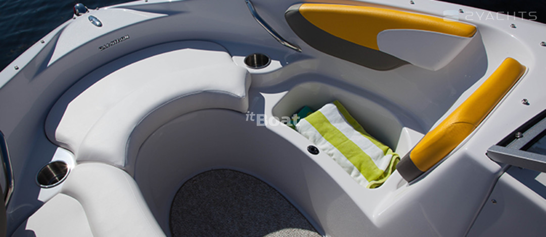 Длина боурайдера Glastron MX 185 около 5.6 метров, если считать вместе с интегрированной swim-платформой. На этом пространстве свободно размещаются 7 человек и полтонны груза. Двигатель до 220 «лошадей» справляется с такой нагрузкой без особого напряга. Катер 185 модели отличается небольшой осадкой — всего 40 см, даже при полной загрузке она не превысит 80 см. При необходимости на нем можно плыть по неглубокой речке, где суда помассивнее не смогут избежать проблем столкновения с дном.