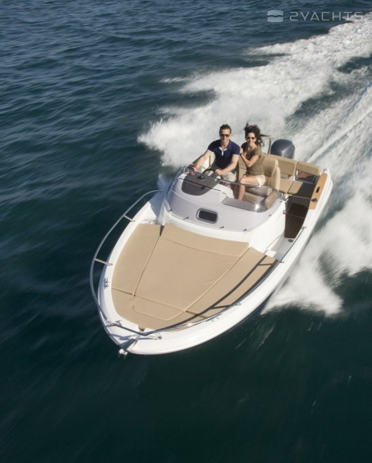 Капитанский пост катера установлен на кокпите, по правому борту. Он оборудован регулируемым штурвалом, электронной панелью управления и компактным ящиком для личных вещей. Напротив него расположены два мягких поворотных кресла, а по левому борту предусмотрен вход в каюту, где установлены угловой диван, трансформируемый в двуспальную кровать, компактный столик и шкаф для одежды.