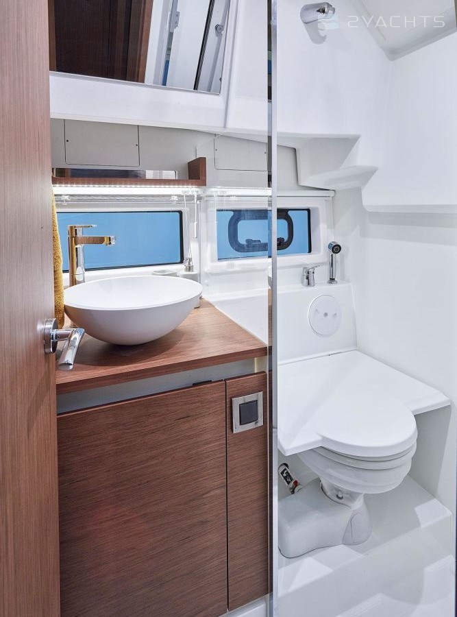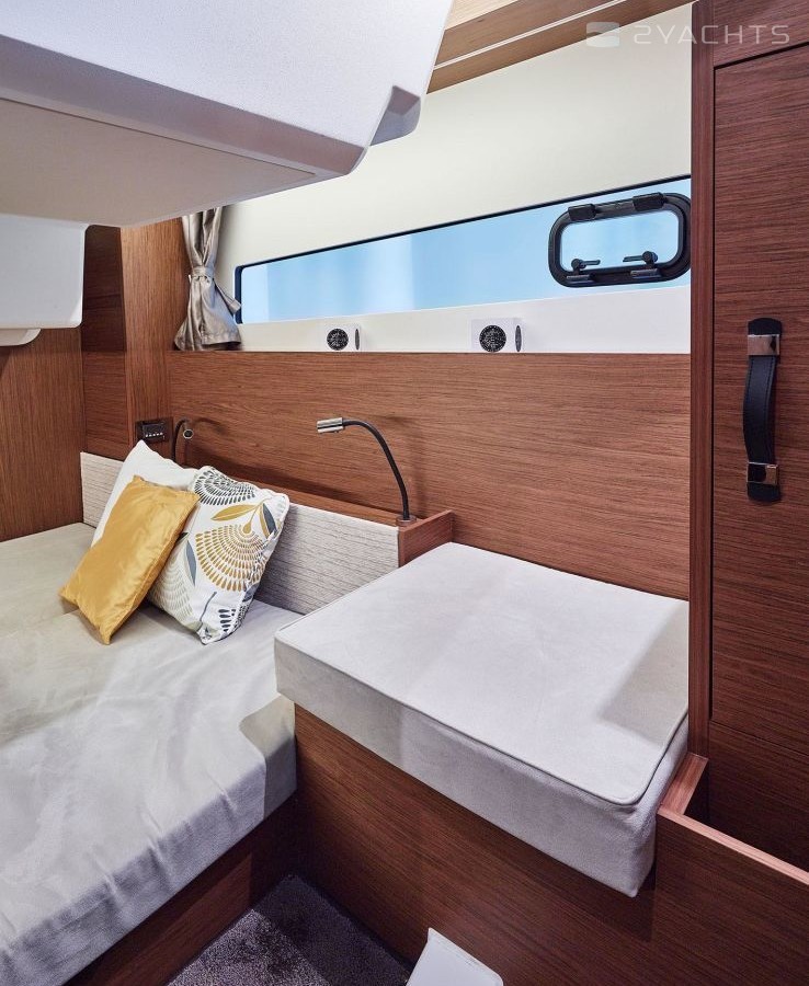 В главной каюте расположены двуспальная кровать, компактный диван, шкаф для одежды, и санузел в отдельном помещении. За входной лестницей расположена спальная каюта, в которой установлены двухместная кровать, просторные шкаф и рундуки.