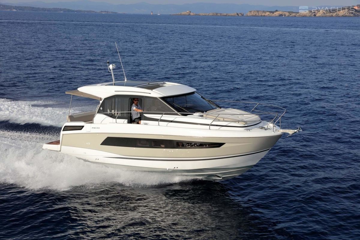 Jeanneau NC 33 – прогулочная модель катера, выпускаемая с 2018 года. Международная сертификация CE (B) позволяет осуществлять выходы в море, на расстояние до двухсот миль от берега. Длина стеклопластикового корпуса судна составляет 10.53 метра, ширина – 3.32 метра, а осадка – 0.96 метра. На нем предусмотрены десять посадочных и четыре спальных места для пассажиров.