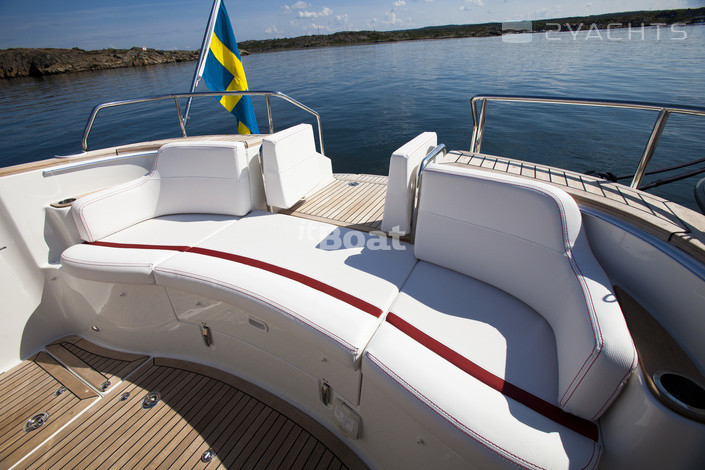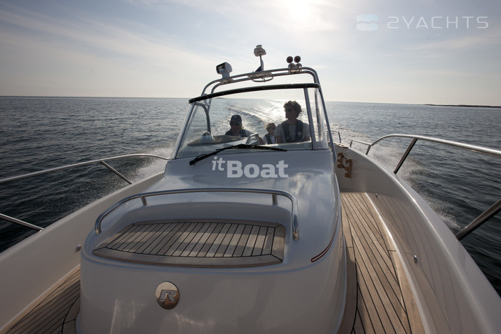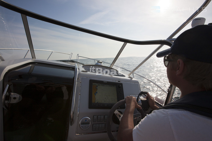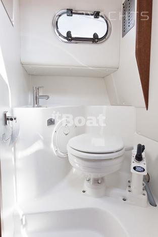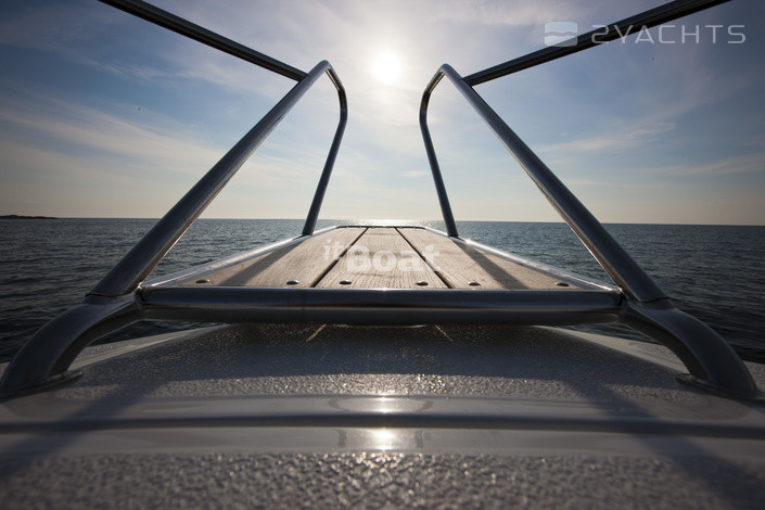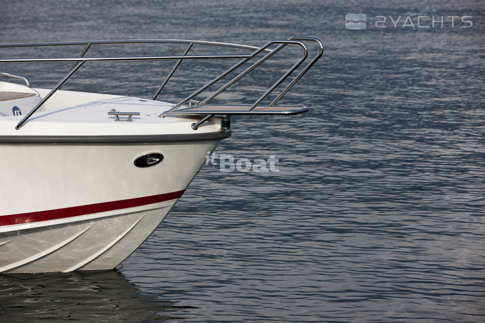 Если собрать воедино все требования к идеальному катеру для выездов на купание с компанией друзей или вдвоем с девушкой, и воплотить их в прочном стеклопластике, хромированной нержавейке и теплом тике, то получится Nimbus 250 R. Пост управления снабжен двумя оффшорными креслами, а развернув их назад к дивану и установив на палубе столик, можно получить отличное место для пикника. Высокие комингсы и надежные релинги гарантируют абсолютную безопасность пассажиров на ходу. Ведь двигатель Volvo Penta D4-300 способен разогнать катер до 43 узлов, а благодаря двум поперечным реданам его управляемость просто фантастическая, хотя и крены в поворотах тоже не слабые. Но не это главное в Nimbus 250 R. Кроме удобного кокпита с большими возможностями трансформации, конструкторам удалось на 7,39 метрах длины встроить в катер полноценную каюту с камбузом, где есть и мойка, и плита, и холодильник. Более того! На катере есть даже изолированный гальюн с умывальником и душем. Так что смело отправляйтесь на купание к дальним заливам и островам на несколько дней, благо жить на борту можно с комфортом.