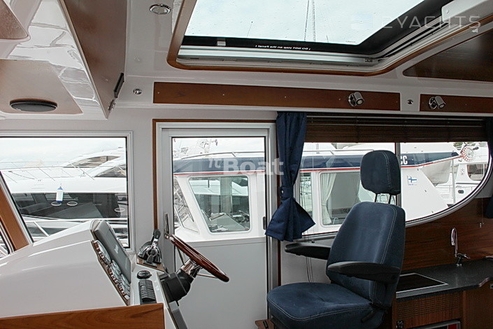 Впервые представленный в 2010 году Nord Star 37 Patrol сразу поразил всех роскошной отделкой и обилием свободного места. Одна только отделанная деревом вплоть до потолка носовая каюта с огромной кроватью, массой шкафов и раздельным санузлом чего стоит! Камбуз, как и на NS 31 Patrol, расположен по правому борту за водительским креслом, но он вдвое больше. Кормовая каюта во всю ширину корпуса радует обилием шкафчиков и двумя раздельными кроватями, одна из которых двуспальная. В каюту ведет стильная винтовая лестница. Пять человек, а то и семь, с учетом раскладывающегося дивана в салоне, могут с комфортом жить на борту этой стильной яхты.Яхта оборудована флайбриджем с двумя отдельными креслами, угловым диваном и большим столом на телескопической ножке. Шесть-восемь человек свободно разместятся на этом самом благодатном месте яхты, наслаждаясь свежим воздухом, солнцем и великолепной панорамой.
