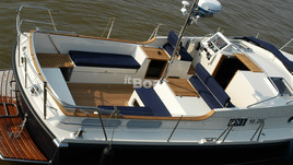 Флагман линейки водоизмещающих прогулочных катеров ONJ. Круизный каютный катер, который позволит насладиться как достаточно длительным путешествием, рыбалкой, так и работой. Эта модель активно используется лоцманской службой в Нидерландах. Характерный для моделей голландских катеров ONJ – стильный классический внешний вид, профессиональные обводы, потрясающая эргономика. Катера ONJ уникальны во всем, начиная с планировки интерьера и экстерьера, и заканчивая превосходными ходовыми качествами Открытый кормовой кокпит разделен на две зоны: для пассажиров в корме оборудованы диваны-рундуки с мягкими подушками, место для судоводителя и двухместный диван для штурмана и пассажира. В случае непогоды ходовой тент надежно защитит всех пассажиров и капитана от ветра и дождя. Под диваном штурмана вход в гостевую каюту с двумя спальными местами. Кабина разделена на: - камбузную зону с плитой, раковиной и холодильником. Любую хозяйку катера обрадует, насколько правильно распланировано пространство для хранения вещей. В камбузной зоне предусмотрено большое количество ящиков и шкафов для посуды и продуктов; - обеденная зона с двумя диванами и столом на телескопической ножке. Камбузная и обеденная зоны отделены от каюты перегородкой с дверью. -спальная зона с двуспальной кроватью; -гальюн и раковина. -два шкафа для вещей. Лодка идеально подходит для путешествий по рекам и городским каналам за счет небольшого мостового габарита - 1,2 м.