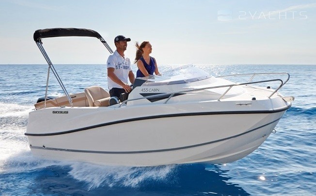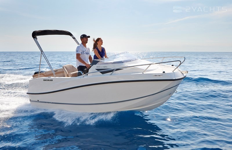 Катер Quicksilver Activ 455 Cabin, изготовленный из стеклопластика, выпускался одноименной компанией с 2015 года.