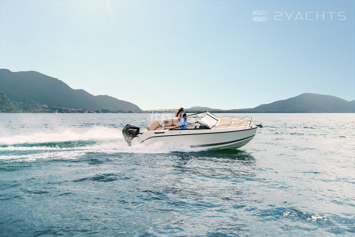 Кокпит яхты оснащен системой самоотлива, диваном с рундуками для хранения, раскладным креслом по левому борту, столом и переносным 12 вольтовым холодильником. На корме кокпита находится платформа для купания и складная лестница для спуска в воду, рядом расположен душ. Пост управления имеет два регулируемых кресла с поворотными механизмами. Приборная панель Quicksilver Activ 675 Cruiser оборудована тахометром, спидометром, датчиком уровня топлива и штурвалом с гидравлическим усилителем. Предусмотрены переключатель реверс-газ и система аварийной остановки двигателя. Для подключения дополнительного оборудования предусмотрена 12 вольтовая розетка. На носу расположены лежаки с отделениями для хранения. Каюта имеет два спальных места, санузел, датчики угарного газа, систему освещения и открывающиеся иллюминаторы. Доступ в каюту осуществляется через люк, ведущий на палубу.