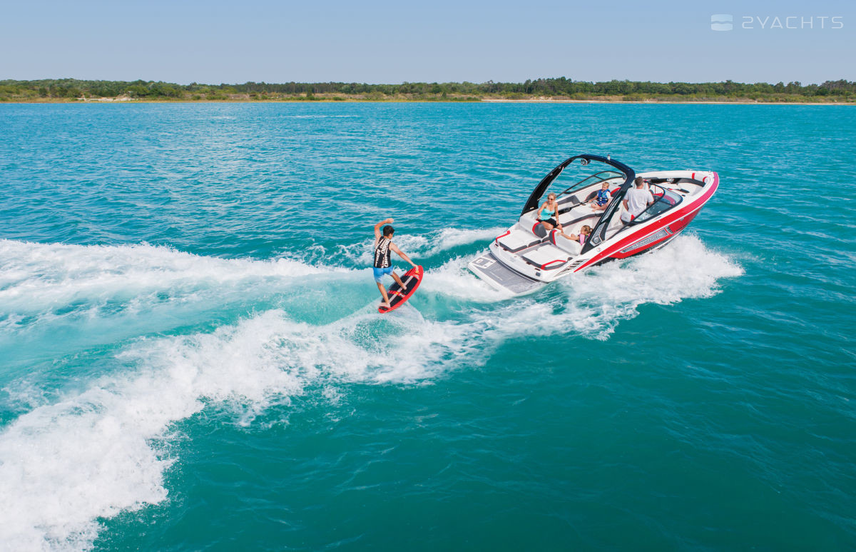 Regal 23 RX Surf оборудован двигателем Volvo V8 300 HP Forward Drive EVC Catalyst, который полностью скрыт под корпусом. Запас топлива на катере – 212 л, килеватость на транце – 20 градусов.