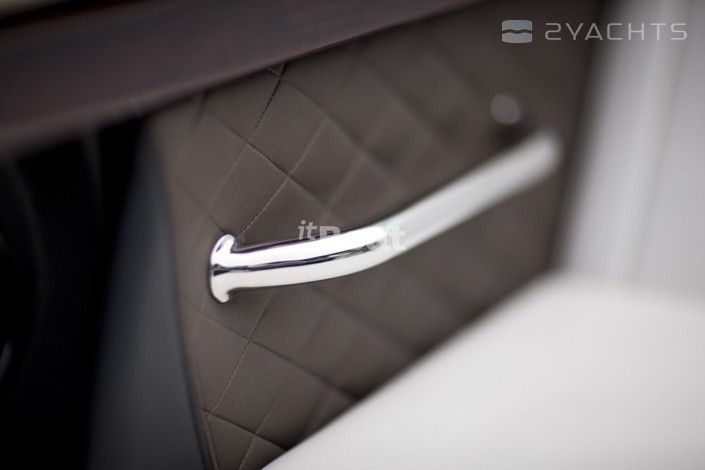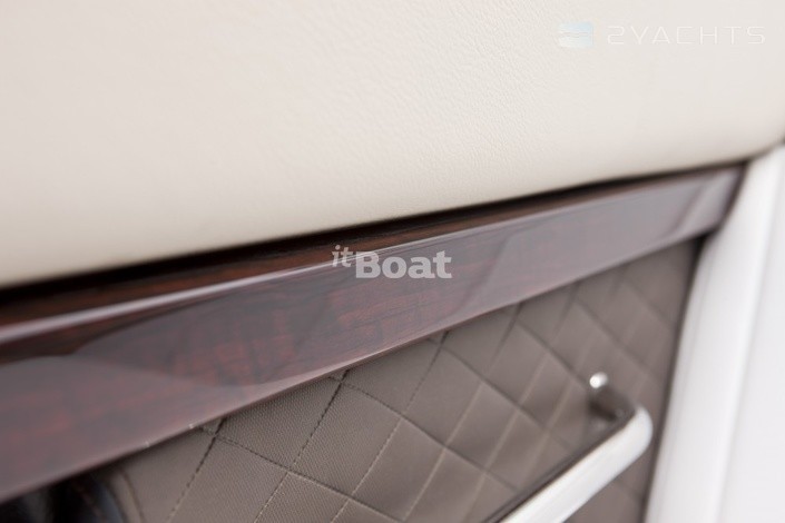 В кокпите установлен вет-бар с раковиной, съемный кулер, рундуки для хранения якоря, водных лыж и другого снаряжения и вещей, оборудована площадка для отдыха. На носу предусмотрен трансформирующийся угловой диван.