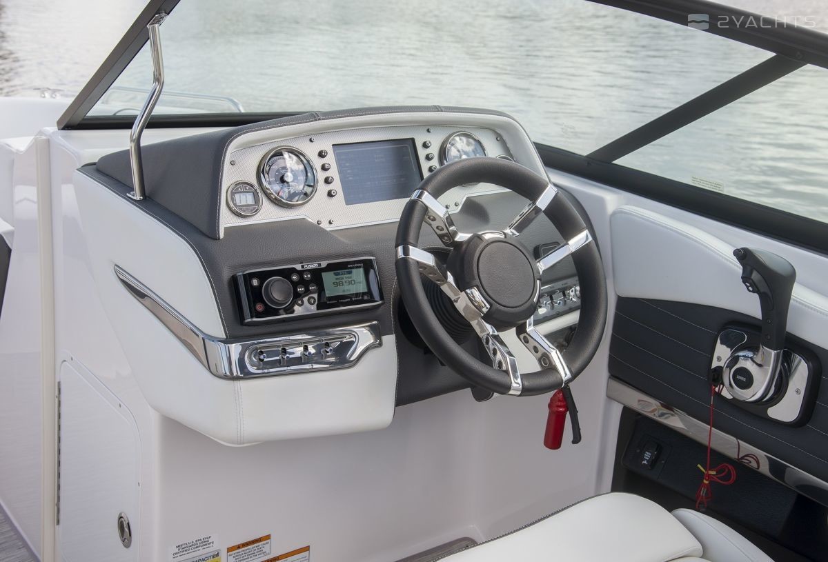 Комфортное управление судном достигается благодаря ковшеобразному креслу с откидным больстером, пятипозиционному штурвалу и полностью оборудованной приборной панели.