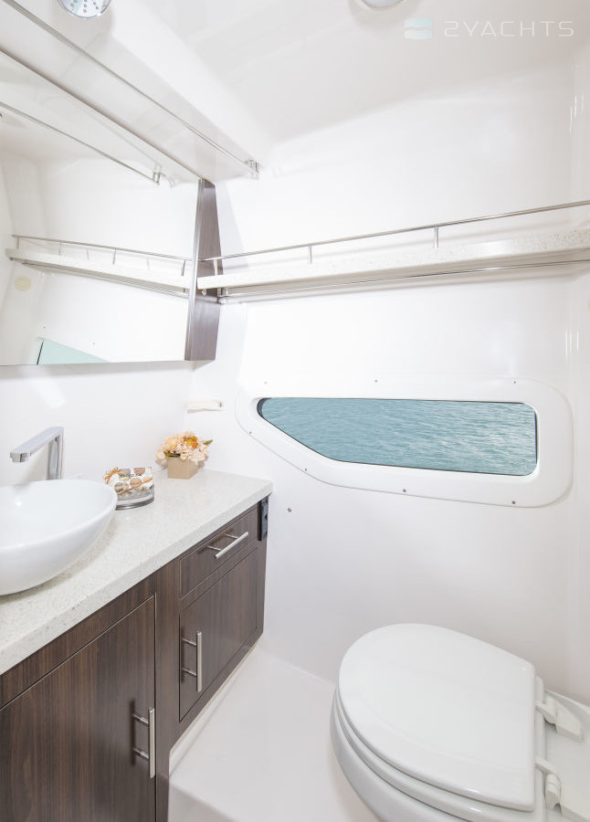 Regal 33 Express укомплектовывается двумя стационарными двигателями на выбор - Merc 4.5 250 Bravo 3, Merc 6.2L 300 Bravo 3, Volvo Diesel D3 EVC, Volvo V6 280 Catalyst или Volvo V8 300, максимальная мощность – до 700 л.с. Судно может развивать скорость до 39 узлов. Для удобства маневрирования верфь предлагает дополнительно установить носовое подруливающее устройство.