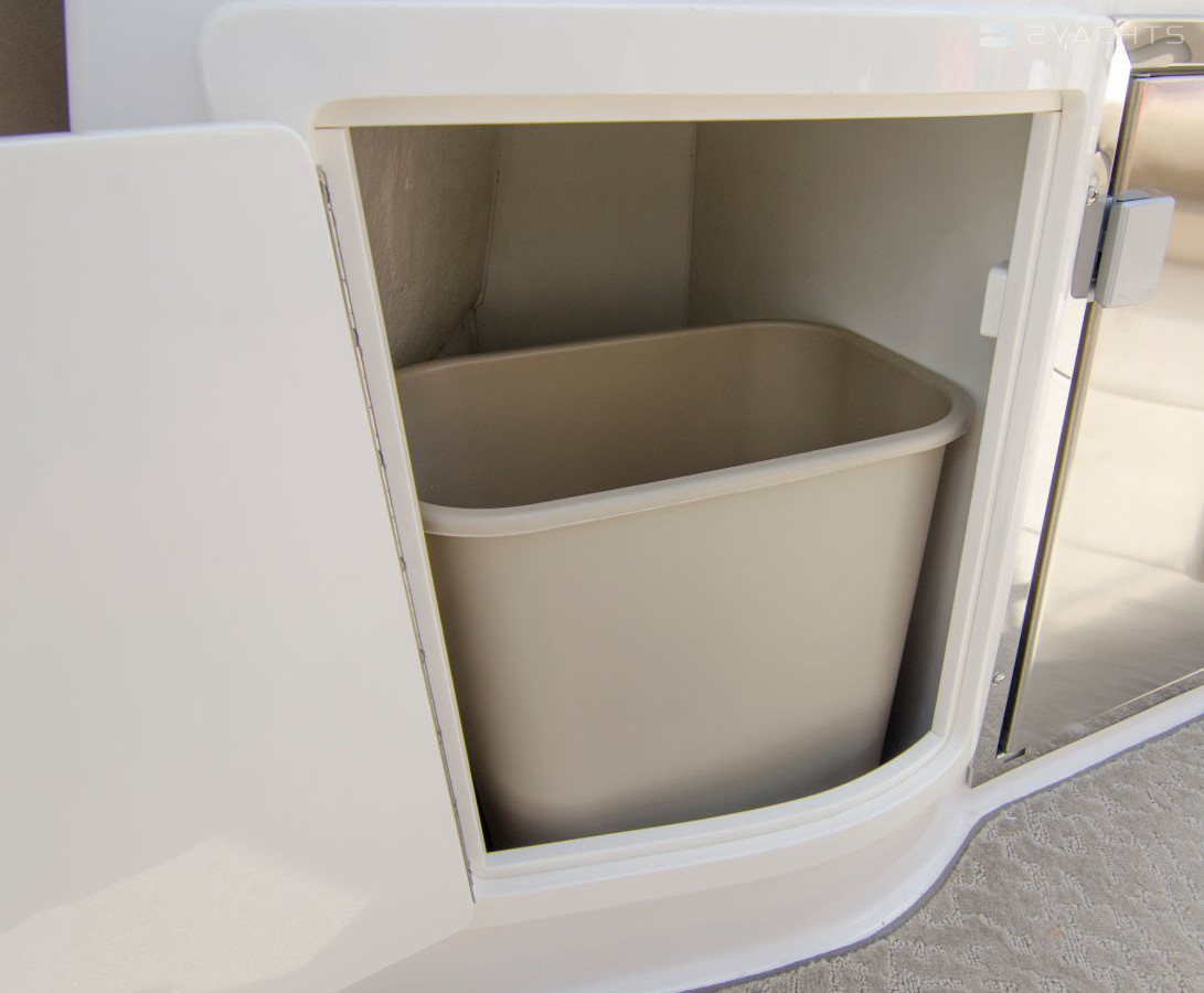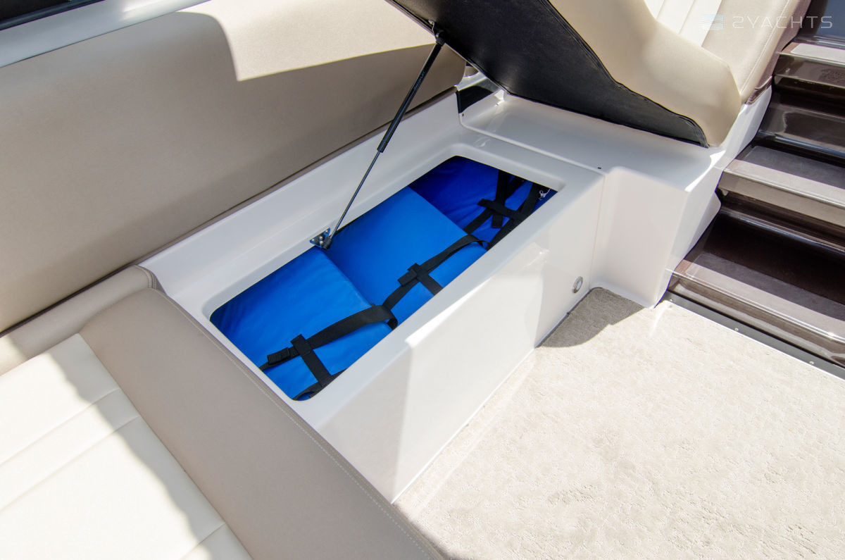 В кокпите расположена полукруглая динетта и зона отдыха с шезлонгами со встроенными рундуками. Диван на корме оснащен функцией UltraLounge, благодаря которой положение спинки изменяется в четырех вариантах. Также кокпит оборудован ветбаром с мойкой и шкафчиками, столиком из тика с дополнительным отсеком для хранения личных вещей и оснастки.