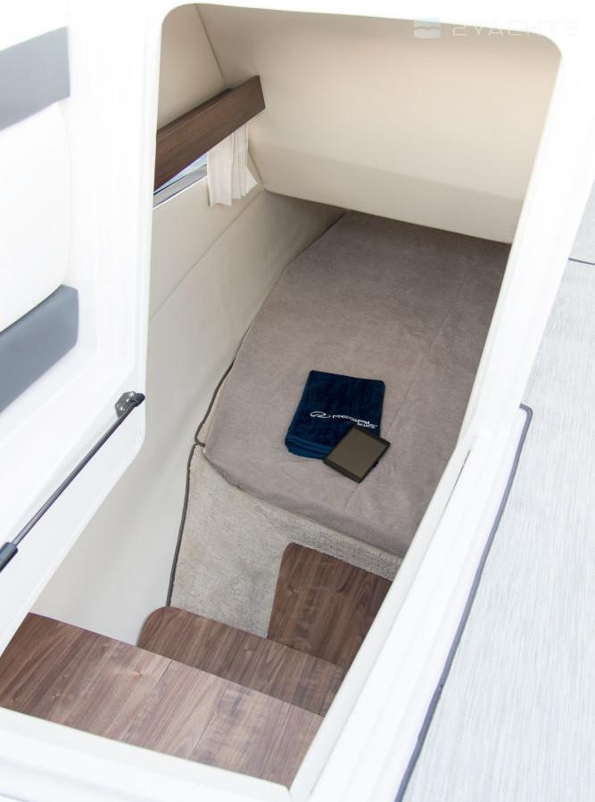 В кокпите расположен ветбар, холодильник и раковина, а также дополнительная рабочая поверхность; в полу оборудован отсек для хранения оснастки и личных вещей. Зона отдыха включает в себя трансформирующийся лежак и сдвоенное кресло.