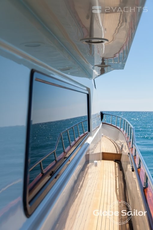Инновационный пост управления на флайбридже, благодаря подъемному боковому остеклению, можно полностью закрыть и превратить в кондиционируемый салон. А салон главной палубы, выполненной на одном уровне от кормы до носа, представляет собой уютный лофт на борту 27-метровой яхты.В качестве более приватного варианта, на главной палубе можно разместить большие апартаменты владельца: SX88 — абсолютно эксклюзивная модель в этой серии яхт.