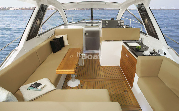 Яхта Sealine S380 является дальнейшим развитием удачной модели Sealine SС35. Настолько удачной, что в свое время она победила в конкурсе Motor Boat of the Year Awards 2008 в номинации Sportscruisers. На S380 сохранились все оригинальные дизайнерские решения 350-ой модели, вроде специального отсека, куда можно быстро свернуть и убрать тент, треугольных вырезов в боковых окнах для коммуникации рулевого с береговым пирсом или подплывшей лодкой, огромного люка в крыше надстройки. Правда крыша стала белой: стиль-стилем, но допускать излишний перегрев салона-кокпита ни к чему.Незначительно — на 80 см — увеличилась длина, а в остальном яхта повторяет свою предшественницу. Качественный интерьер, оптимальное внутреннее расположение, множество шкафов и рундуков, достойные динамические характеристики позволяют использовать Sealine S380 как для кратковременных прогулок с компанией друзей, так и для длительных семейных путешествий.