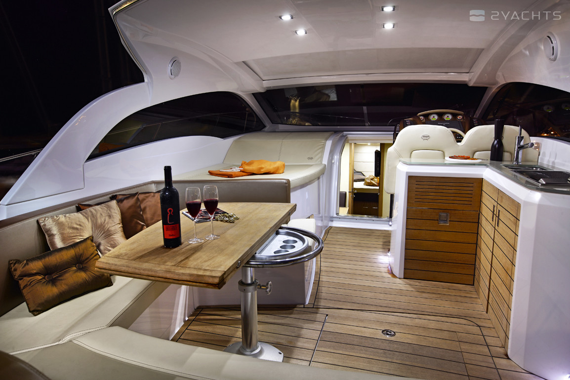 В комплектацию силовой установки могут войти два двигателя VOLVO PENTA разных серий с суммарной мощностью в 540, 640 или 700 л.с. Для их работы на борту в двух баках создан запас топлива в 890 литров.