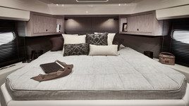 На флайбридже с дублирующим постом управления установлены угловые диваны, дополнительные лежаки, раскладывающийся стол и сдвоенное капитанское кресло с расположенным за ним кухонным шкафчиком. Носовая часть этой палубы является зоной отдыха.