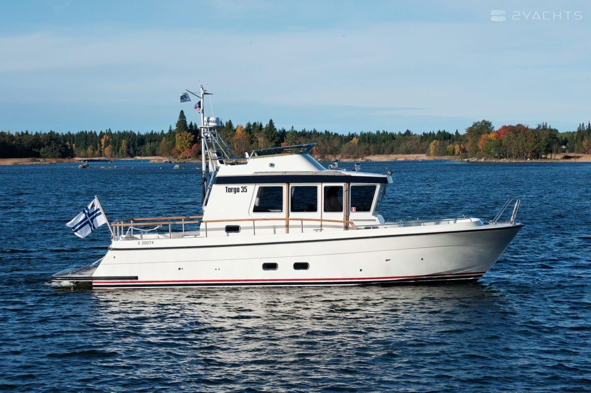 Этот компактный двухкаютный морской круизер выпускается c 1999 года и является самой популярной моделью финской верфи Botnia Marine. Неприхотливая и надежная яхта предсказуемо ведет себя как в глиссирующем, так и в водоизмещающем режиме, отличаясь хорошей управляемостью и маневренностью. Производитель предлагает на выбор широкую линейку дизельных двигателей Volvo Penta и MerCruiser мощностью до 400 л.с., а также бензиновые агрегаты. Удобно спланированное палубное пространство дает возможность использовать судно в утилитарных целях и, например, заниматься оффшорной рыбалкой. По желанию покупателя лодка может оснащаться флайбриджем, и 95% яхт выходят с верфи именно в такой конфигурации, так как управлять ими с верхнего мостика — особое удовольствие. Несмотря на спартанские размеры кают, на борту могут легко разместиться несколько человек, причем проживание не превратится в пытку, поскольку обилие рундуков позволяет захватить немало вещей.