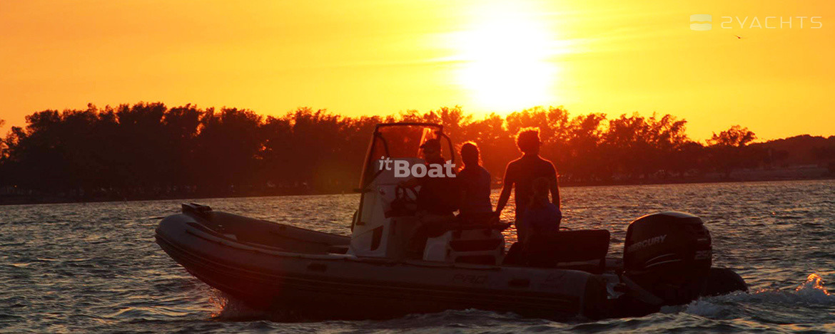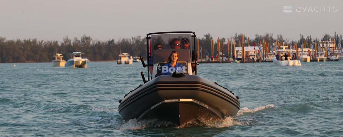 На корме Zodiac Pro 7 установлены металлическая арка с креплением для буксировки и две компактные платформы для доступа к воде, одна из которых оборудована раскладной лестницей. На полу судна расположены клапаны для слива воды и противоскользящие насечки. Предусмотрены два варианта окраски корпуса – серо-белый и черный. На модель устанавливается подвесной двигатель мощностью 250 л.с. Емкость топливного бака составляет 200 литров.