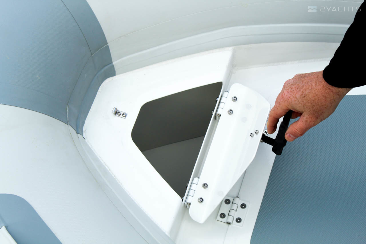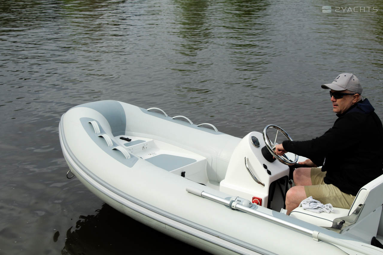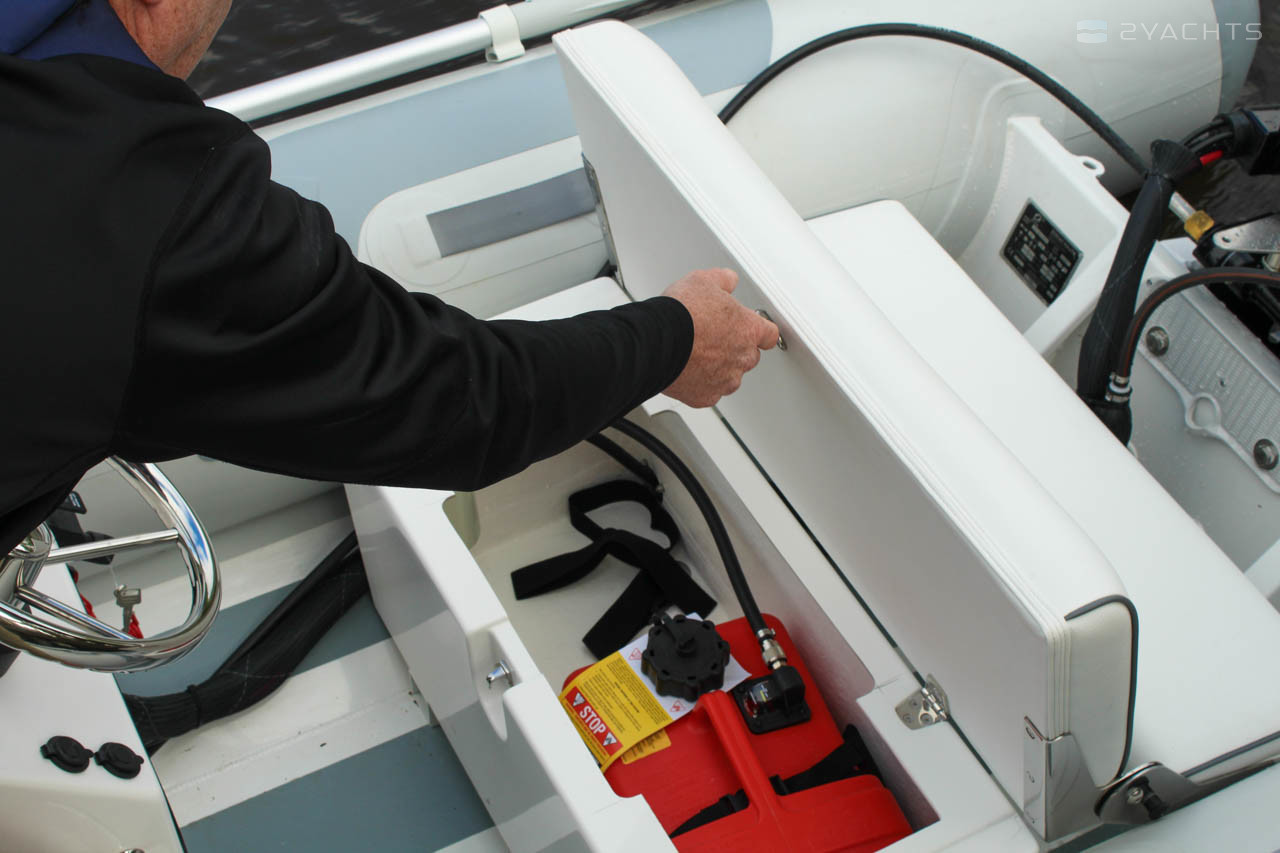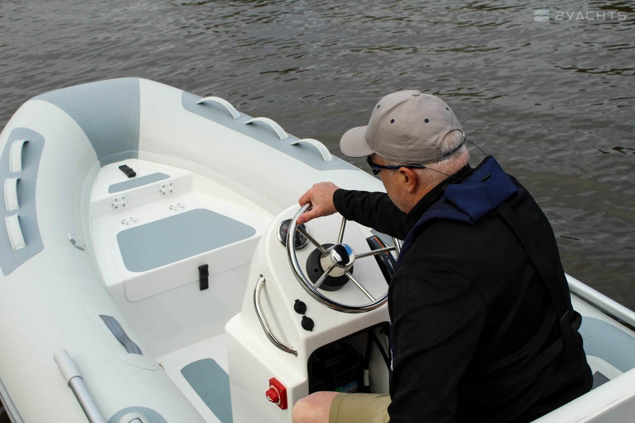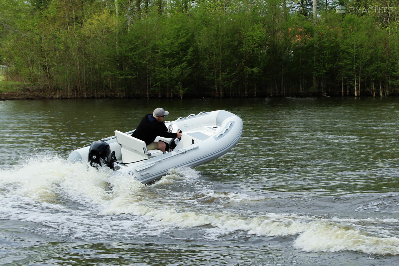 На судно можно установить подвесной мотор мощностью до 30 л.с. В стандартной комплектации оно оборудуется ремонтным набором, насосом, леерным тросом, а также двумя пластиковыми веслами со специальными креплениями и уключинами для них. Вес полного комплекта поставки составляет 68 килограмм.