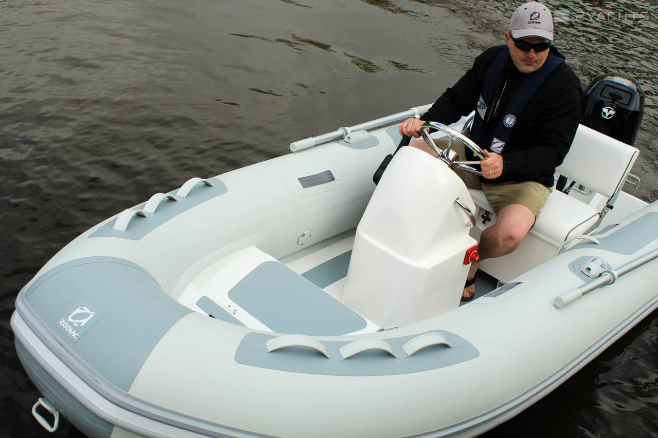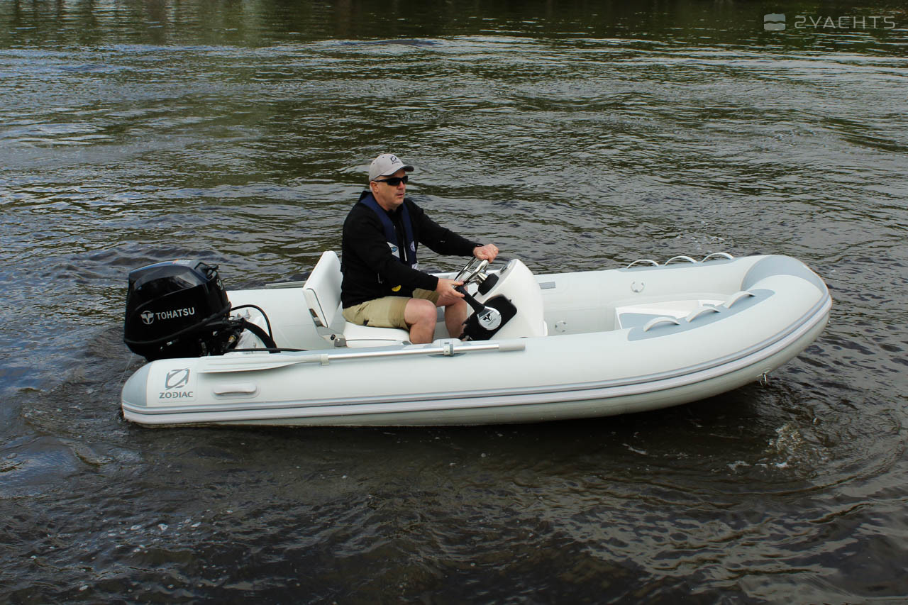 Прогулочная модель катера Cadet RIB Alu 360 DL выпускается компанией Zodiac с 2017 года. Алюминиевый корпус оборудован надувными баллонами, его длина составляет 3.63 метра, ширина – 2.7 метра, а осадка – 0.4 метра. Грузоподъемность судна – 557 килограмм, количество посадочных мест для пассажиров – шесть. Оно имеет международную сертификацию CE (C) и может эксплуатироваться только в пределах прибрежных вод.